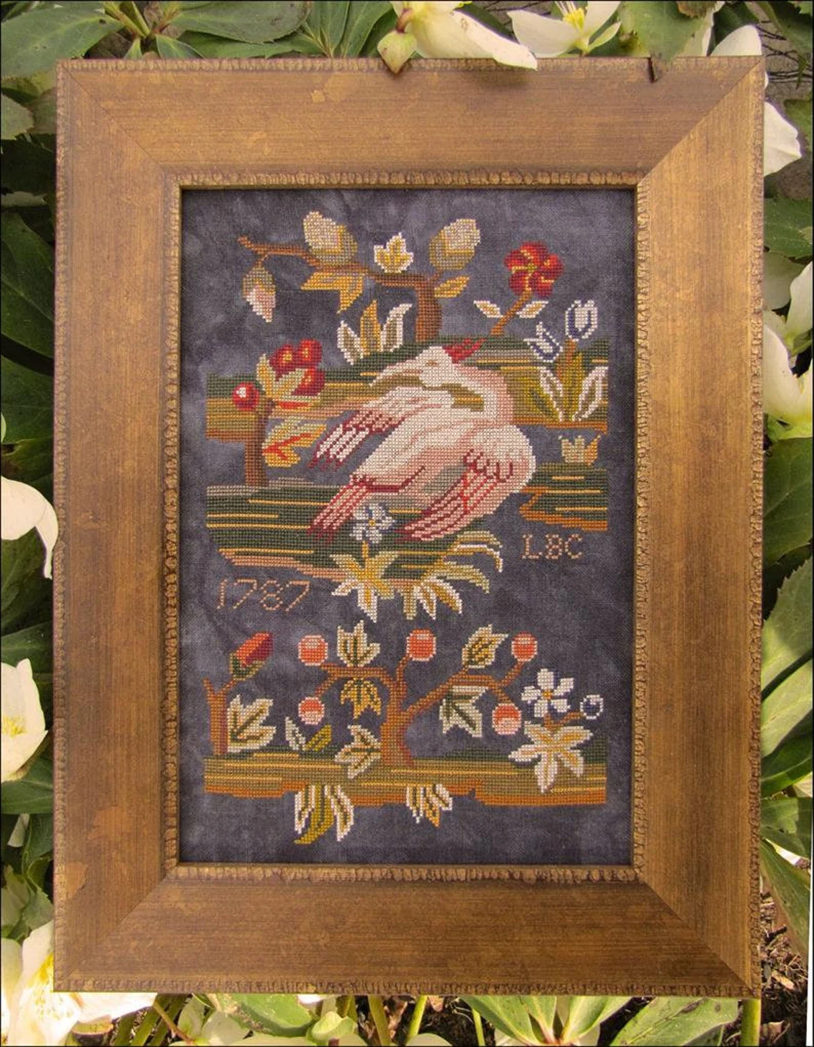 This design is a reproduction of an antique needlepoint purse Kathy found in a Pennsylvania shop, arranged into a pleasing sampler.