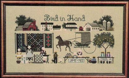 Bird in Hand is an actual town in Pennsylvania. This is a traditional Amish scene of a small community selling their goods by the road, and farm houses and barns in the distance.