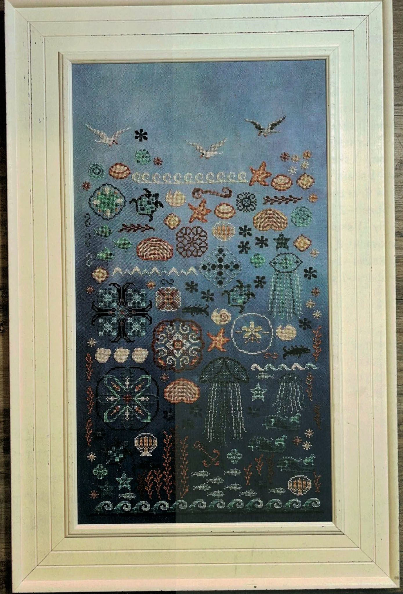 Stitched on 32ct Midnight Mermaid Linen from Under the Sea fabrics.