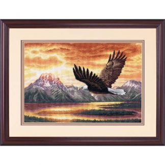 Stamped Cross Stitch Kit from Dimensions contains: presorted cotton threads, design printed on ivory cotton sailcloth, needle, and easy instructions. Designed by Sueellen Ross. Frame and mat not included.