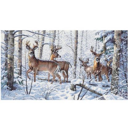 Enter the silent, snowy world of a birch forest in winter with these Whitetail deer. Kit from the Dimensions Gold Collection.