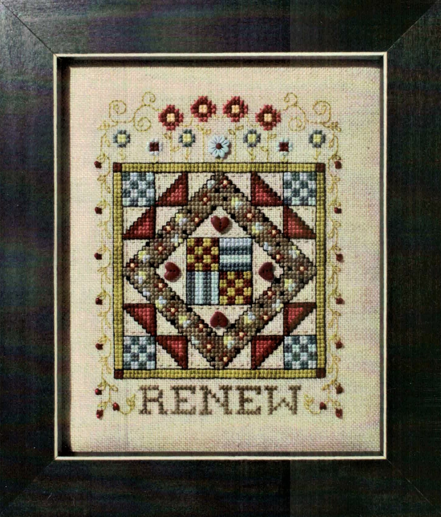 The last of a series of six designs in the Quilted With Love Series from Stoney Creek, Renew is based on a “Garden Path” quilt block.