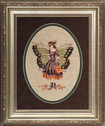 Not so terribly frightful is she who flutters in the Hallow’s Eve. One can hear her giggling as the plants her colorful tricks and treats. Are those violet wings part of her costume, or are they real? She is the third of six limited-edition Holiday Fairies by Nora Corbett.
