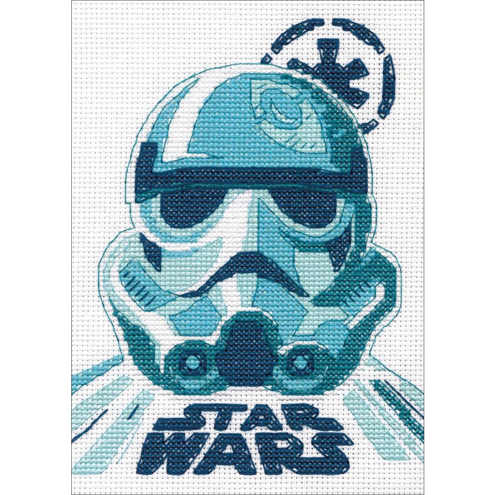 A stormtrooper, representative of the main ground force of the Galactic Empire, is featured on this Star Wars counted cross stitch design by Dimensions.