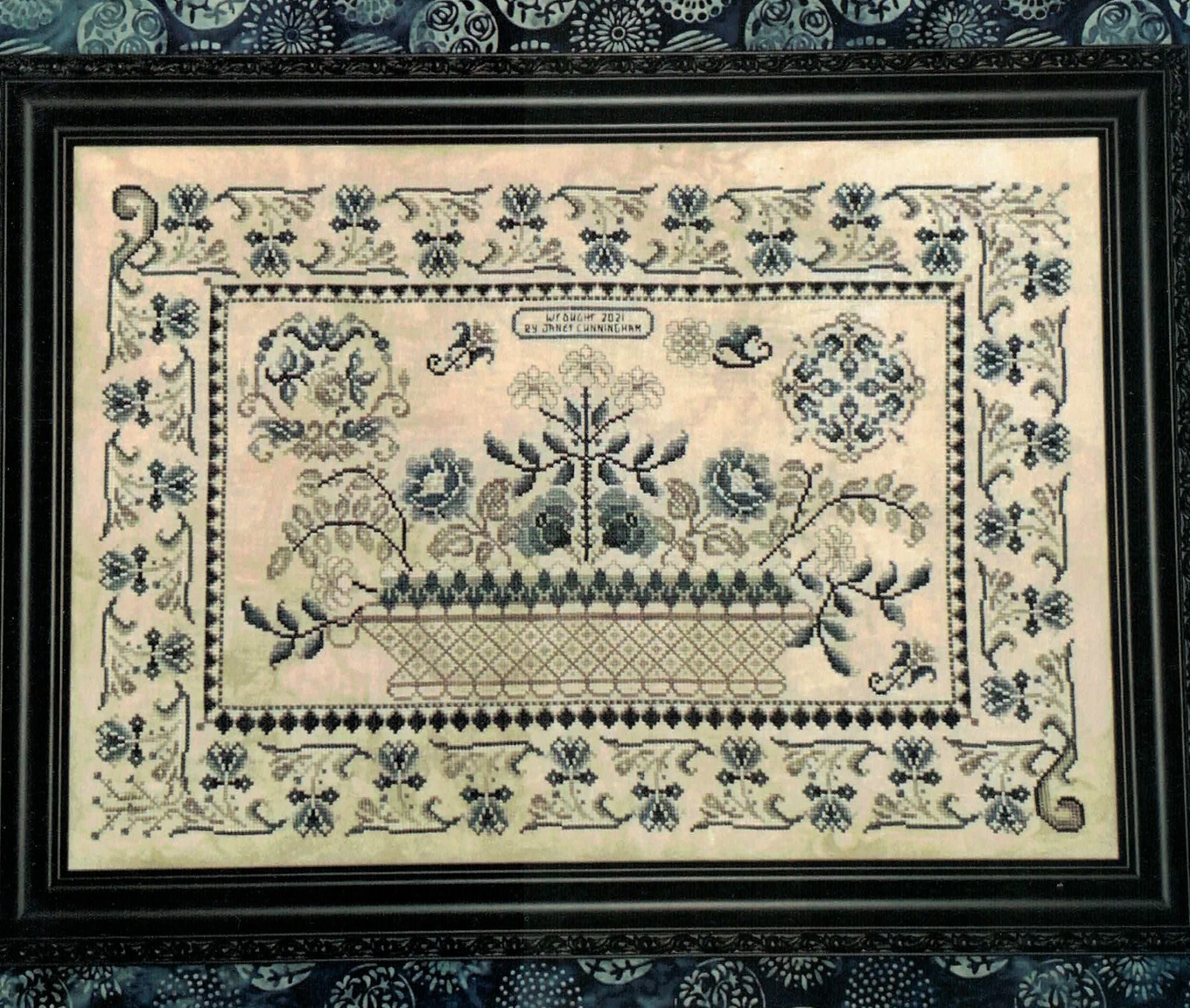I was inspired to create this sampler while looking at antique samplers. I fell in love with the floss colors and decided to create my own.