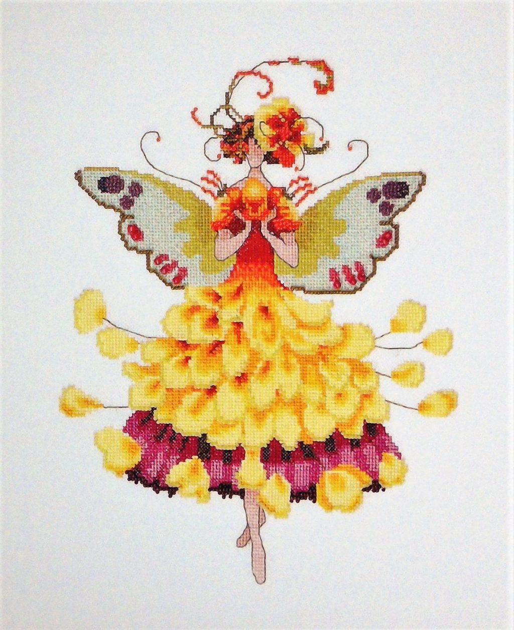 Buttercup from the Pixie Couture Collection – Pixie Blossoms series. With a radiant miniature bloom of orange and yellow in her hair, and another in her hand, she is the embodiment of summer joy!