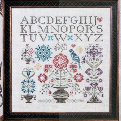 I had such fun with the Quaker star blocks in Vintage Stars, that I continued to play with the shapes and flower styles that are so typical for the Quaker look with a new alphabet and lovely pots and flowers that make up a motif in this pattern.