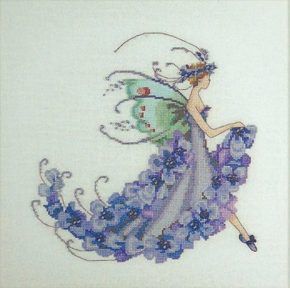Wisteria from the Pixie Couture Collection – Pixie Blossoms series. Venturing from her woodland home, she flitted up to the very top of the arbor and selected a choice periwinkle bloom for her gown.