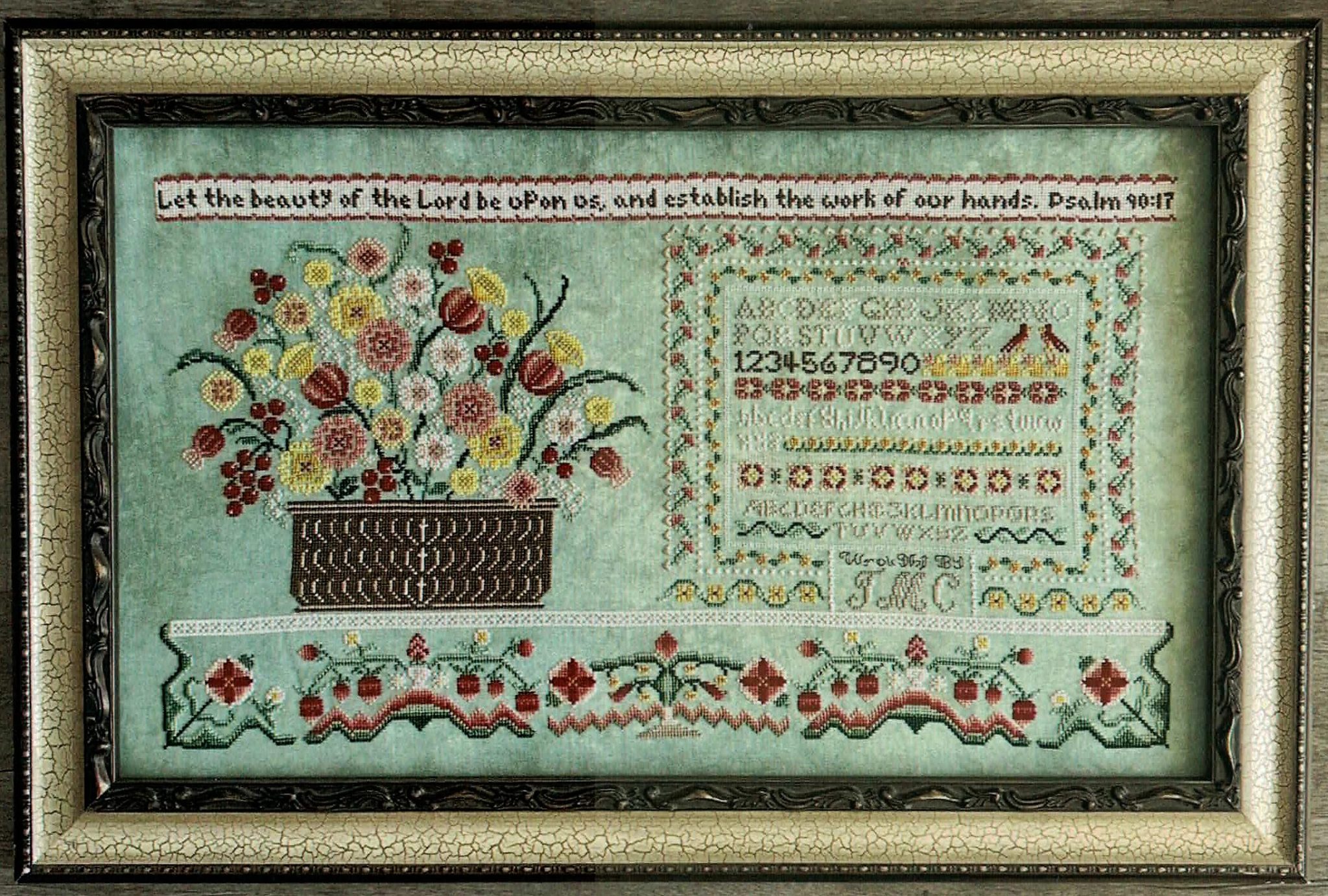 Inspiration came from everywhere for this sampler. I first saw the lovely overdyed fabric, then I did a floss toss. I read a Bible verse that I liked. I had fun adding some specialty stitches and alphabets.