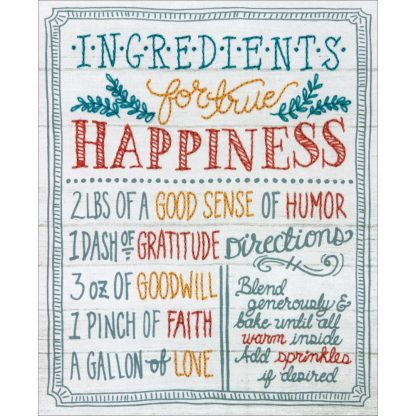 Display the endearing Ingredients for Happiness in your own home or stitch it as a gift for a special family. This embroidered design is fast and easy since only selected areas are stitched. “Add sprinkles if desired” – who wouldn’t!