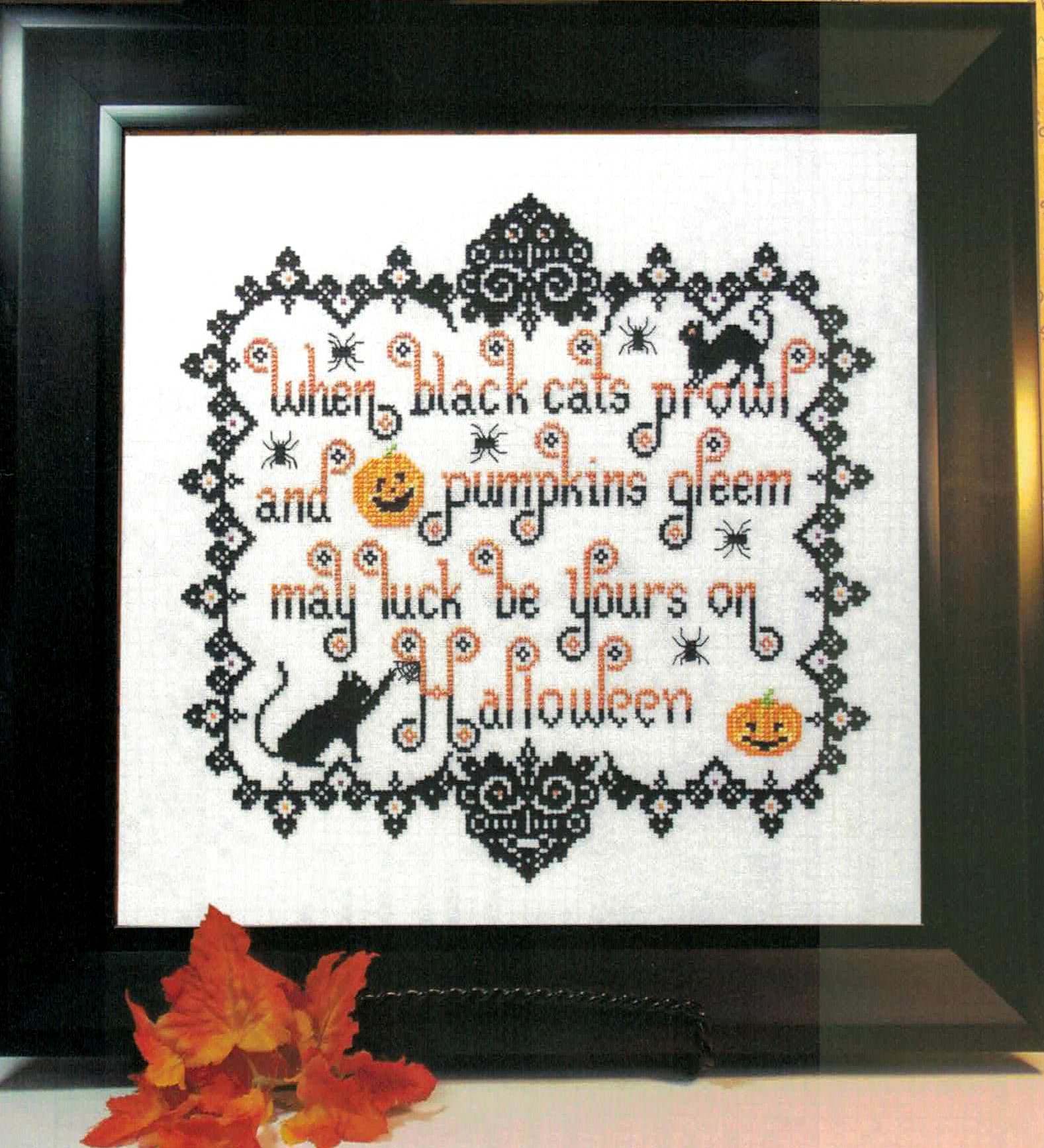 May luck be yours on Halloween… stitch this stunning design in glittering metallics and spooky black and gold, a spirited well-wish for all visitors on Halloween!