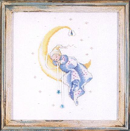 Crescent Dreams, from the Little Stitches collection by Mirabilia Designs. Sweetly elegant, this tiny tot is awash in soft pastels that blend beautifully with any nursery color scheme.