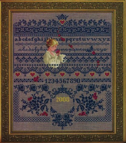Stitched on 28 count Cobblestone Cashel linen from Zweigart (2 over 2). Note: This fabric is discontinued, we recommend Venetian Stone.
