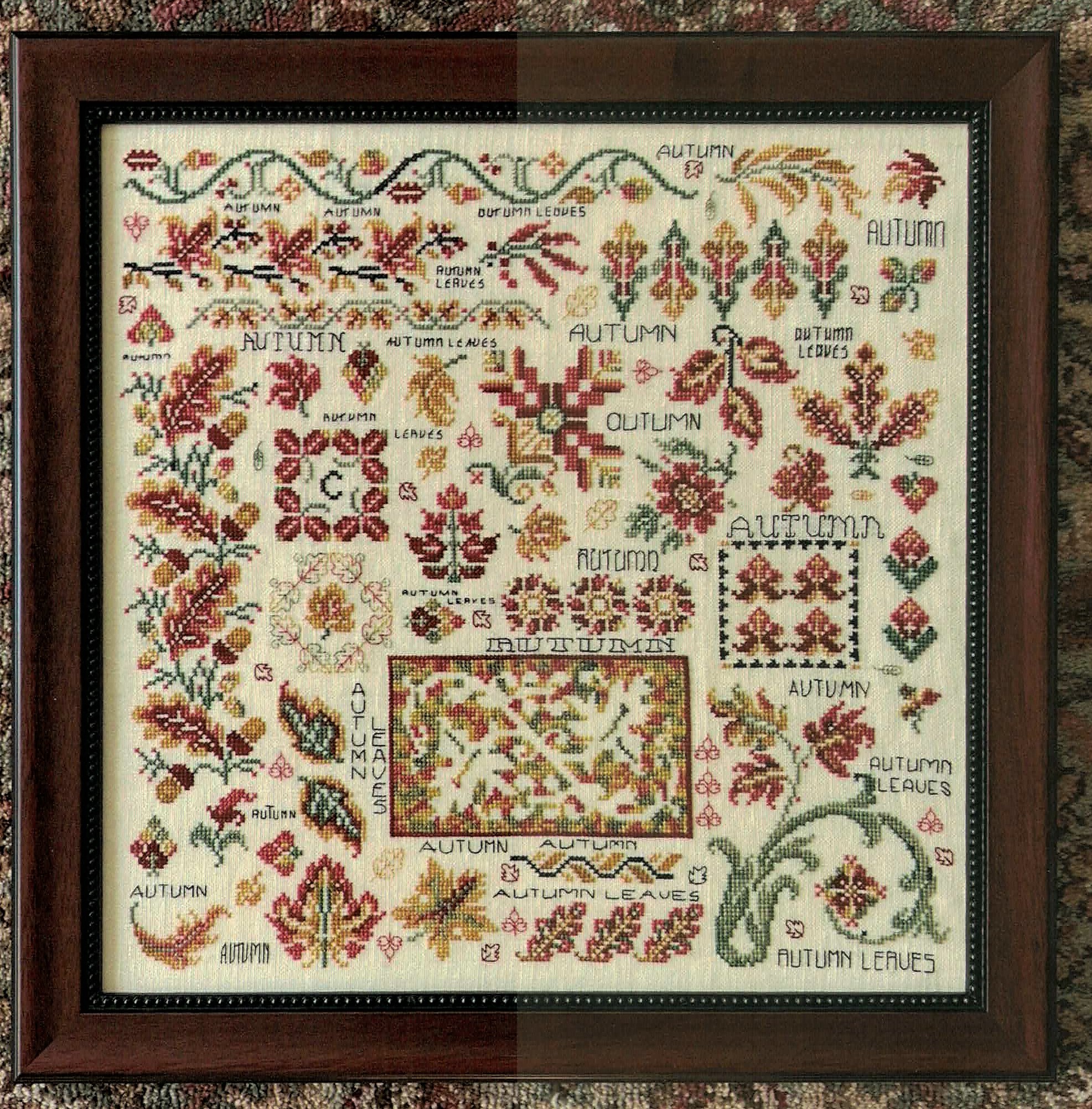 While doing research for my “Dreaming of” series, I realized I had created several leaf motifs to a file. Then I fell in love with the Weeks Dye Works floss colors for the piece!