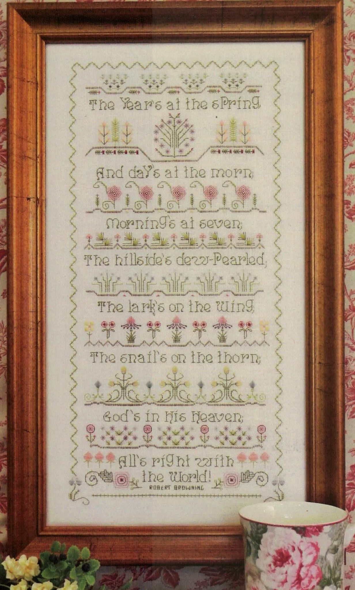 I read the poem “The Year’s at the Spring” by the English poet Robert Browning and I just had to create a sampler using his words.