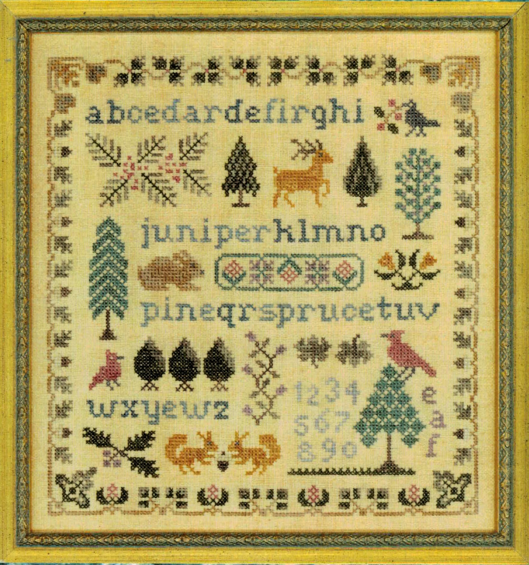 Antique Evergreen Sampler from Elizabeth’s Needlework Designs.