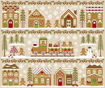 This is a combined kit for stitching the eleven parts of the Gingerbread Village series as one big design, as shown.